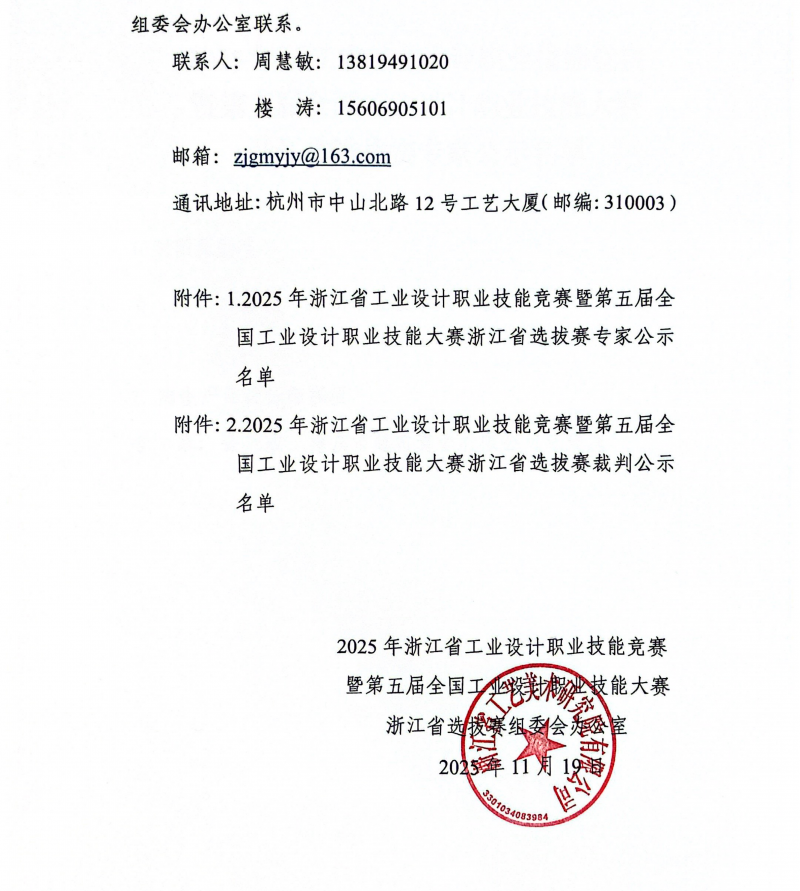 【職業(yè)技能大賽】關(guān)于公布2025年浙江省工業(yè)設(shè)計(jì)職業(yè)技能競賽暨第五屆全國工業(yè)設(shè)計(jì)職業(yè)技能大賽浙江選拔賽各賽項(xiàng)舉辦時(shí)間、地點(diǎn)的通知