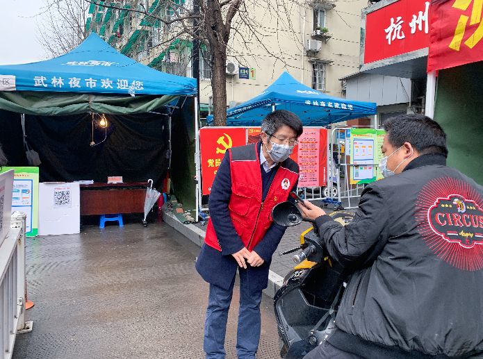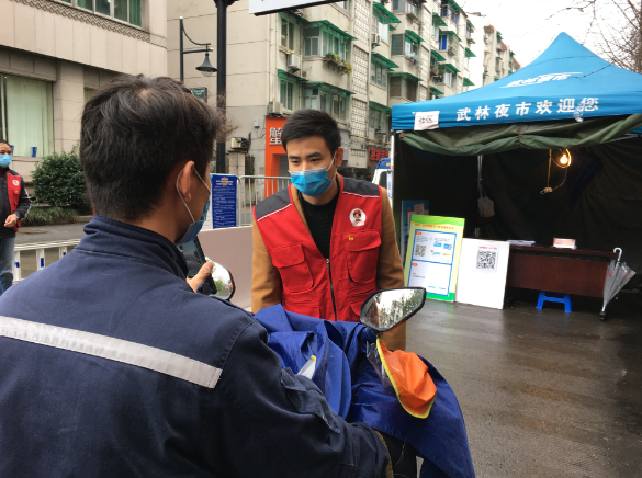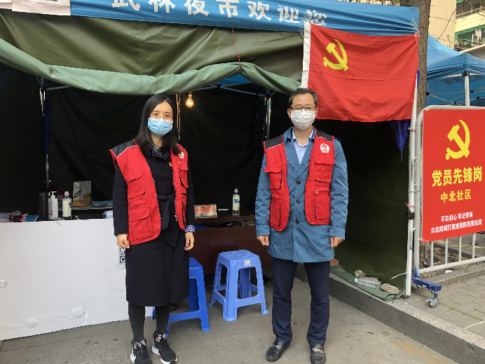 經(jīng)過(guò)與街道的溝通,支部主要負(fù)責(zé)孩兒巷張同泰路口檢疫卡點(diǎn)的志愿服務(wù)工作。接到這一任務(wù)后,支部根據(jù)黨員們的工作安排,及時(shí)做了排班及應(yīng)急預(yù)案,每個(gè)時(shí)間段兩名黨員值班,進(jìn)行輪班和替換,保證崗位時(shí)時(shí)有人在、事事有落實(shí)。在檢疫卡點(diǎn)處,黨員們分工上陣,或檢查身份證、通行證及綠碼,或測(cè)量體溫,與社區(qū)居民們溝通解釋,既保障了交通的平穩(wěn)有序運(yùn)行,也保證了對(duì)每位通行者的健康檢查。